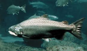 Salmon grow and mature in the ocean, but when they are ready to breed they enter fresh water in order to spawn, travelling to a stream or a pond high in oxygen. The female digs a redd (a hole) in the gravel with her tail. She lays thousands and thousands of eggs into it, many of which will not reach adulthood. It is then that the male fertilizes the eggs. Most of these salmon die after reproducing - their organs just give up. The newly emerged salmon which are called alevins have a food sac in them when they hatch and they stay in the nest. When the food sac is used up the salmon fry. When they emerge they eat mostly insects. As it grows it becomes camouflaged, called parr, and then turns silver into a smolt. After that it swims downstream to the wide, wide ocean. In the estury the fish adapts so that it can survive in the sea. Depending on the species the salmon live for one to seven years before swimming up stream to their place of birth and repeating the cycle. The salmon do not eat at all on the journey back.